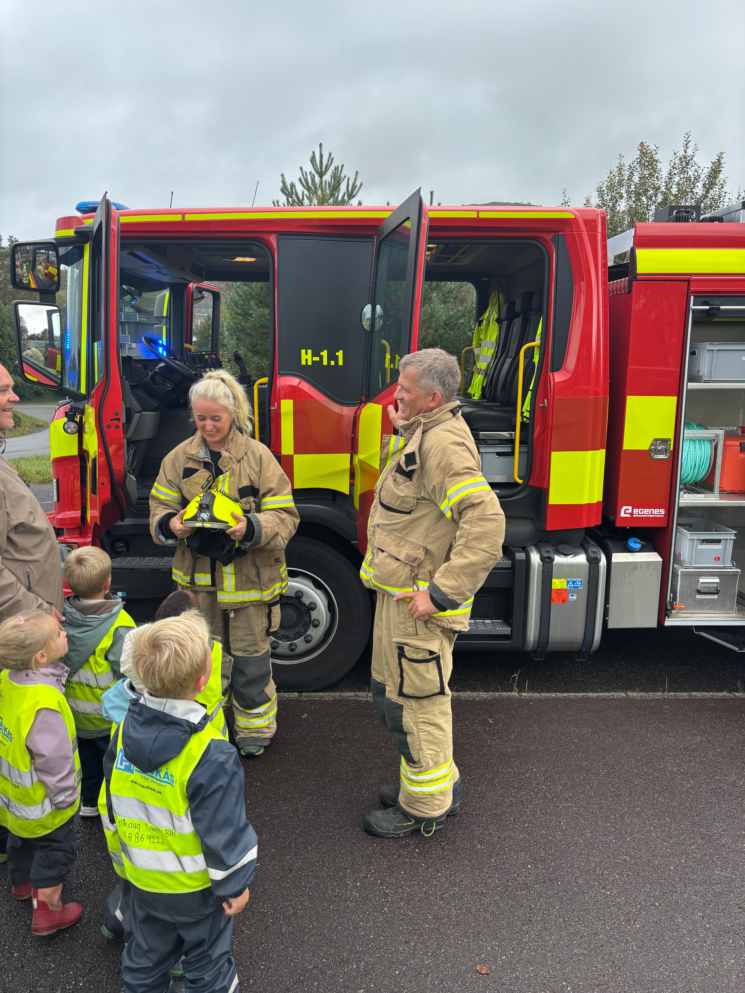 Spenningen var stor da brannbilen rullet inn foran Fjellhaug friluftsbarnehage.