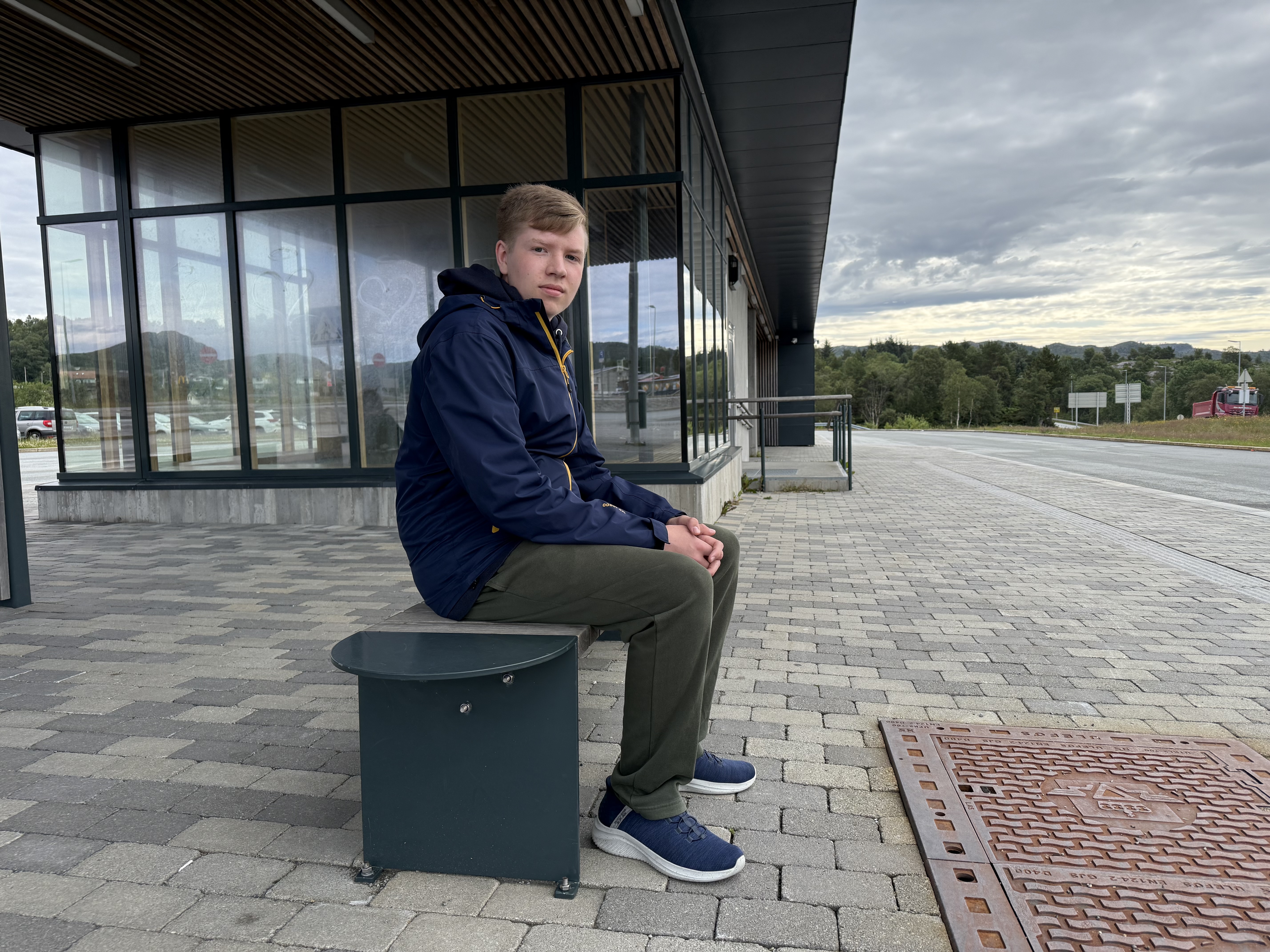 I juli reagerte Kristian Haukås Jordbrekk på at busstilbudet ikke dekket over alle skoledagene. Nå har det imidlertid snudd, ettersom Kolumbus har satt på en ny avgang. Her på Aksdal busstasjon.