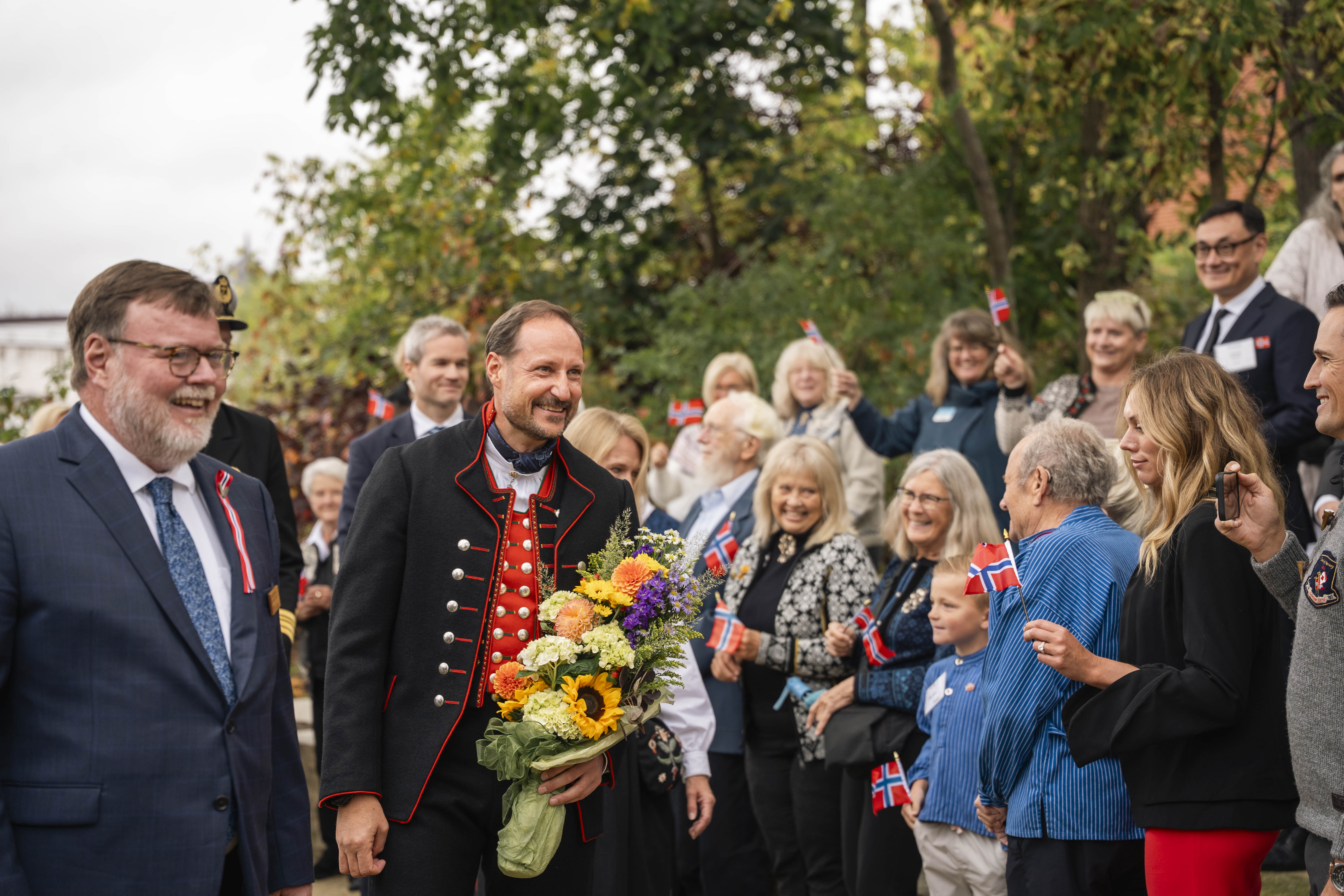 Kronprins Haakon ankommer Decorah og er på vei opp til Vesterheim-museet. FOTO: Anna Silgjerd MonstadBilde 1 av 6