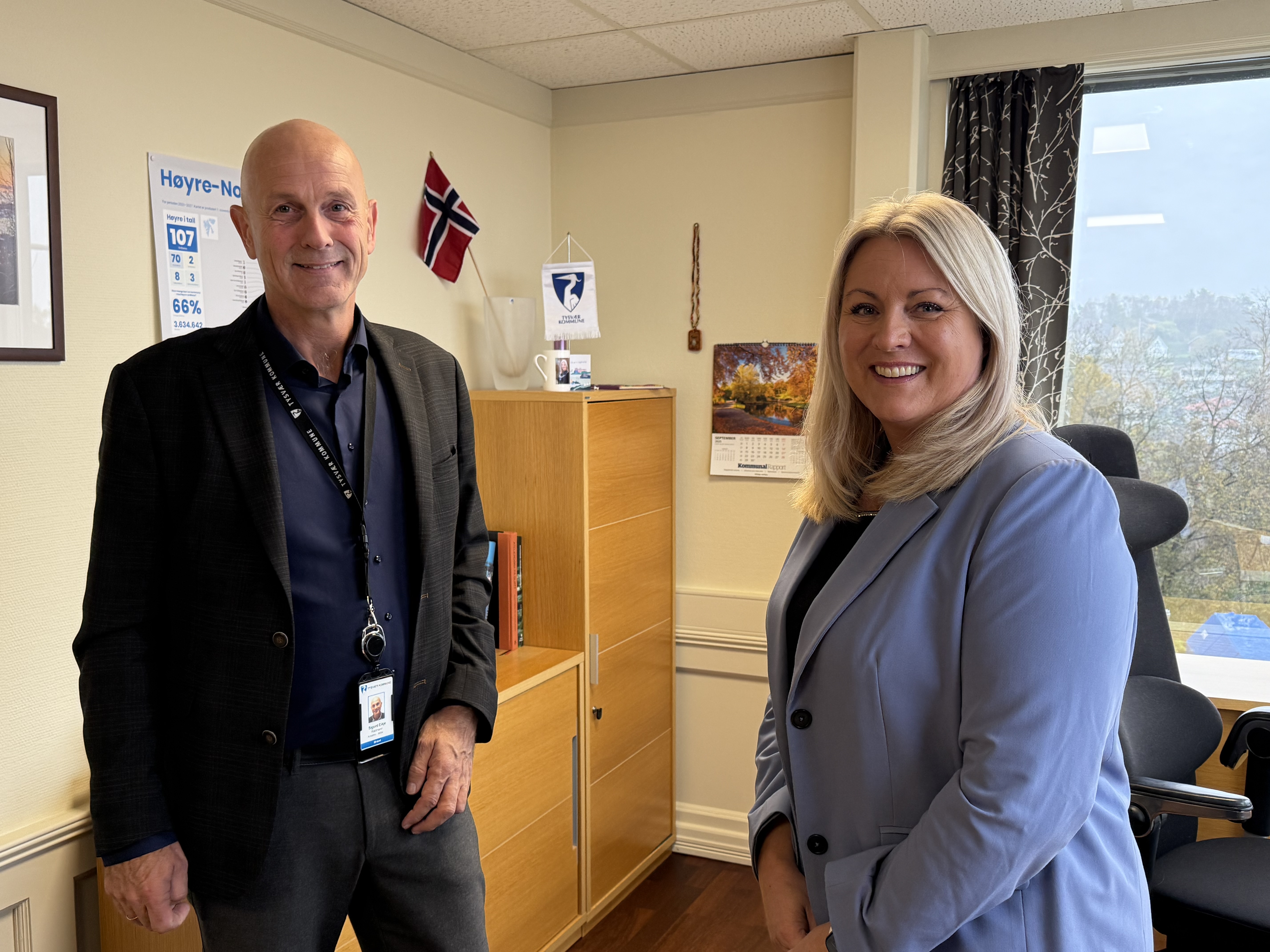 – Nå er prosjektet redusert til 120 millioner kroner, og hvis alle eierkommunene vedtar det er saken ferdigbehandlet, sier kommunedirektør i Tysvær, Sigurd Eikje, om status i saken om det nye krisesenteret. Her med ordfører Monika Lindanger.