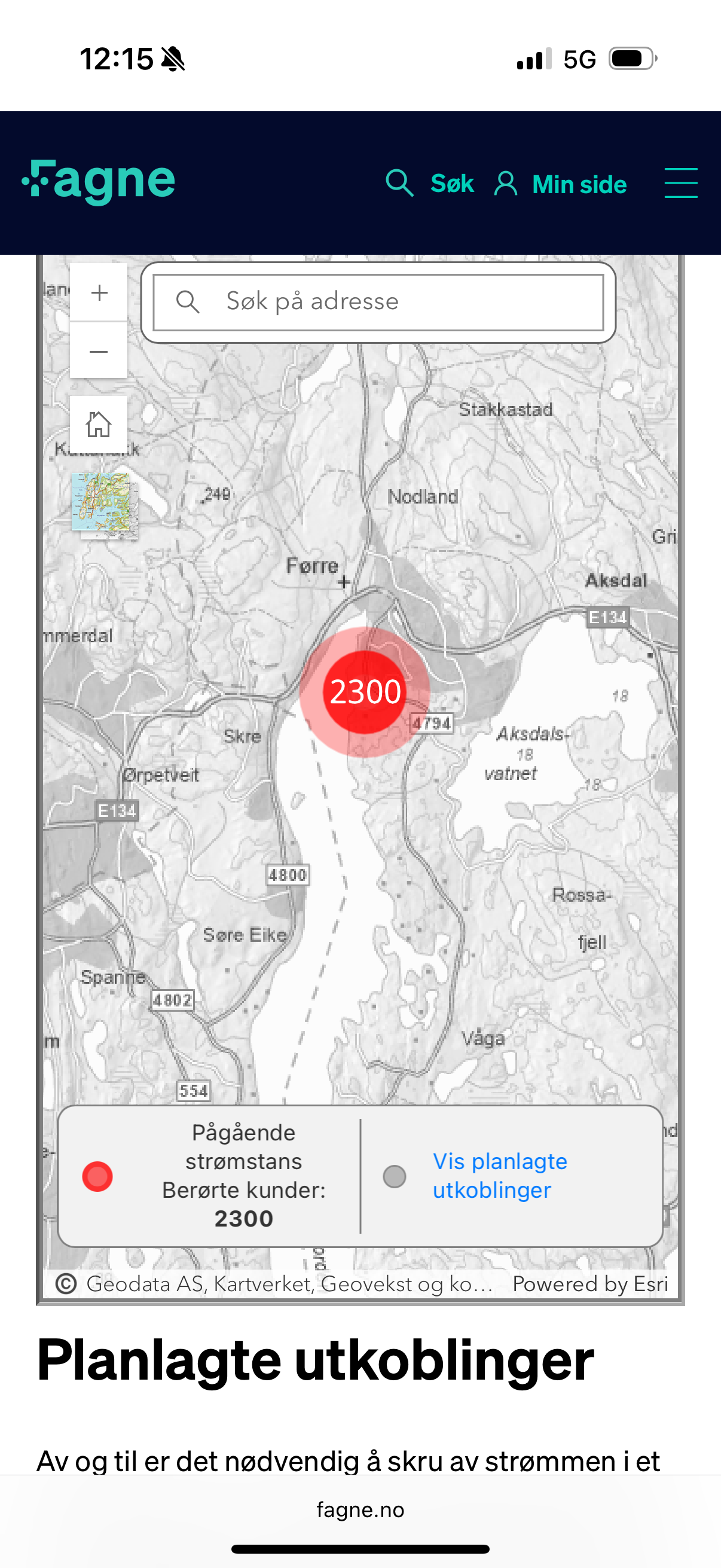 Strømstans i Tysvær og Kolnes