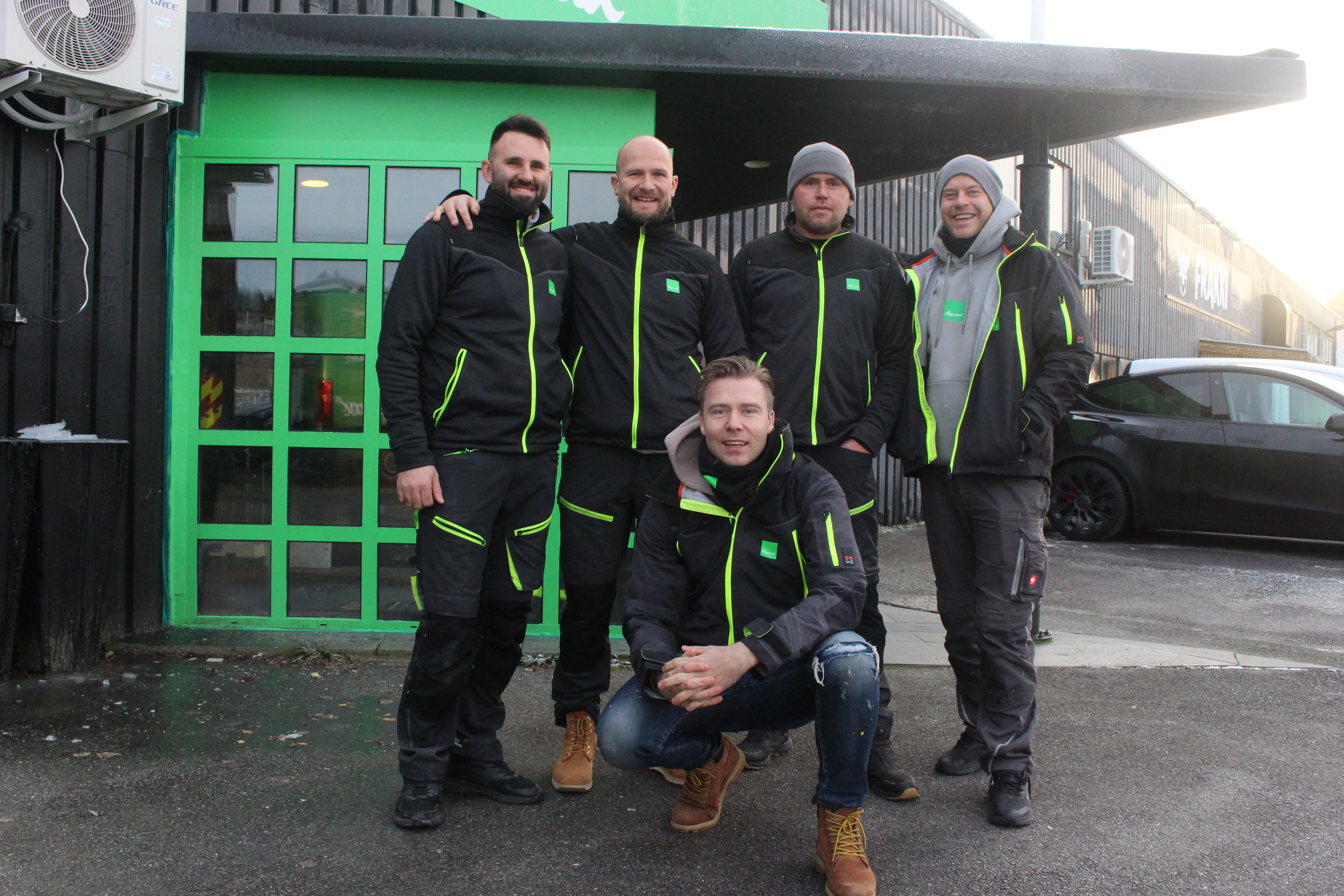 Sanel frå Bosnia, Ajdin frå Bosnia, Roman frå Ukraina og Tor Arne frå Haugesund. I tradisjonell fotballpositur Alexander frå Førre fremst i bildet. Foto: Marit Tvedt