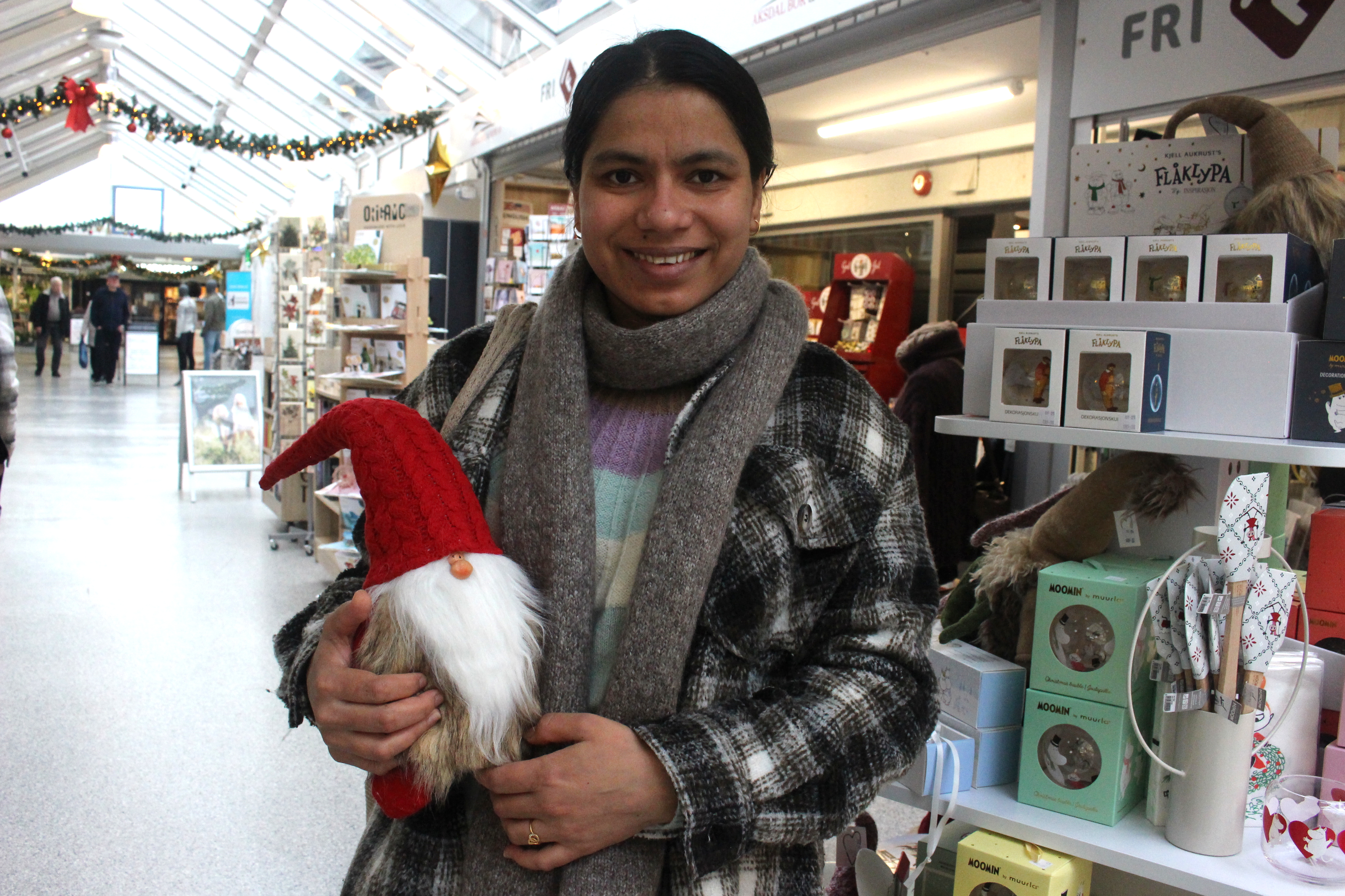 Kumari Pokharel, opprinneleg frå Bhutan, julepyntar sin eigen bustad med norske juleting som nissar og julekransar. Det aller beste med jula er å vere saman med familien sin.