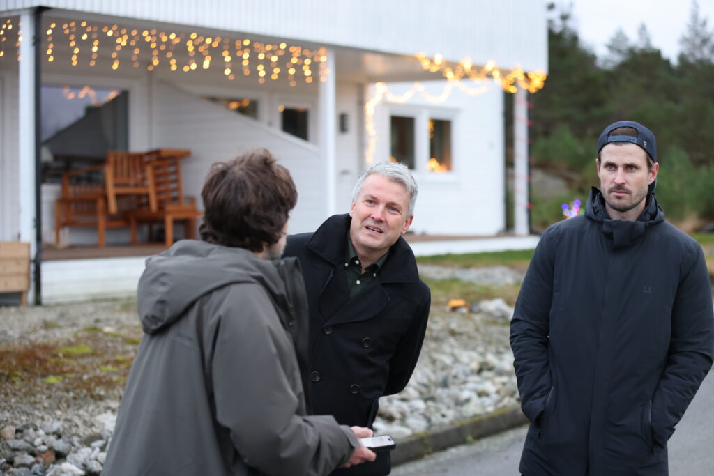 Sammen med Baustad møter vi en gjeng med kjentfolk i bygda. Olav Straum, Helge Lilleskog, Håvard Nordtveit og Thomas Finshus. Også styremedlemmene og naboene til de ti tomtene i Bådsvikfeltet Tiril Kallekodt og Karina Bjørnevik Julbø er på plass.